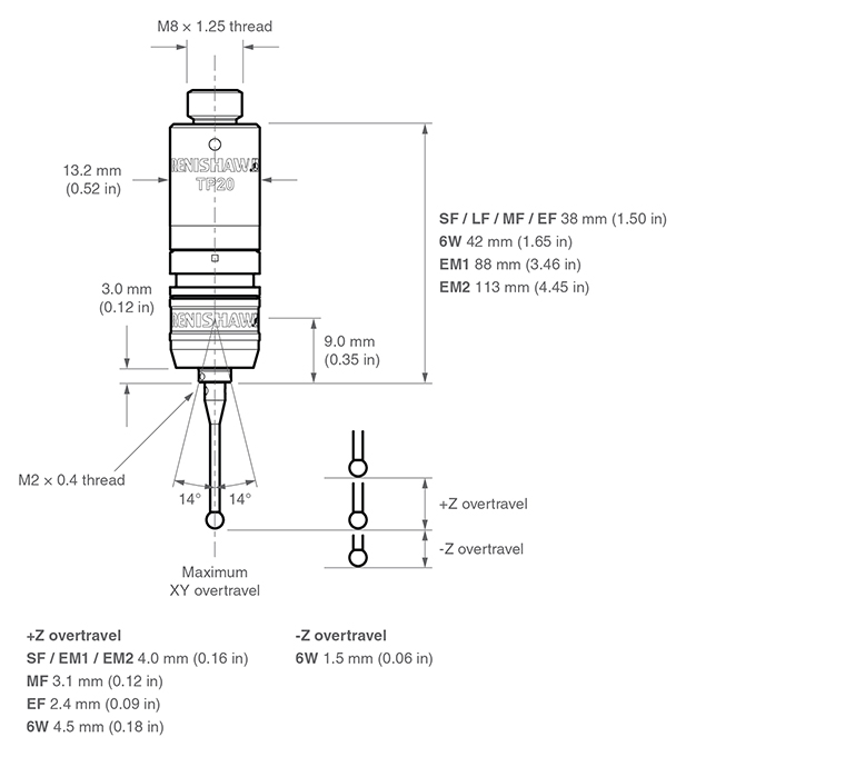 TP20 è una sonda a contatto compatta con possibilità di cambiare il modulo stilo. Il design in due parti (corpo della sonda e moduli stilo rimovibili) permette di cambiare configurazione e utilizzare prolunghe per raggiungere tutti gli elementi di un pezzo complesso. I moduli possono essere cambiati manualmente o in modo automatico, senza bisogno di riqualificare la punta dello stilo.